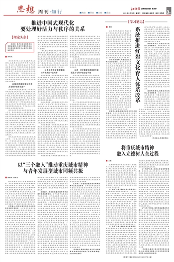 活力与秩序是人类社会发展中的永恒课题,也是现代化进程中的两个基本维度。不久前,《求是》杂志发表习近平总书记重要文章《以中国式现代化全面推进强国建设、民族复兴伟业》指出,在现代化的历史进程中,处理好活力与秩序这对关系是一道世界性难题。中国式现代化应当而且能够实现活而不乱、活跃有序的动态平衡。新征程上,推进中国式现代化,必须处理好活力与秩序的关系,确保党和人民的事业行稳致远。
