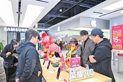 2月19日,苏宁易购观音桥步行街店,市民选购手机、笔记本等电器设备。