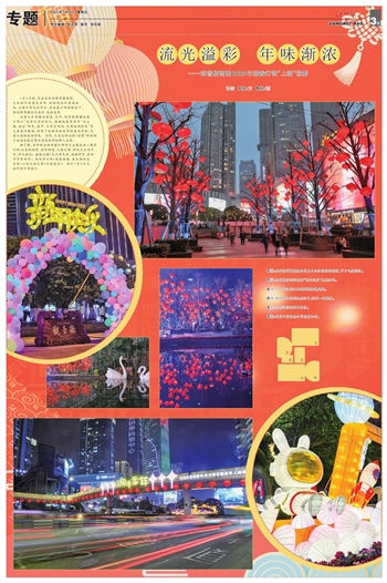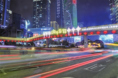 图②:观音桥步行街南端“新年快乐”主题灯饰。