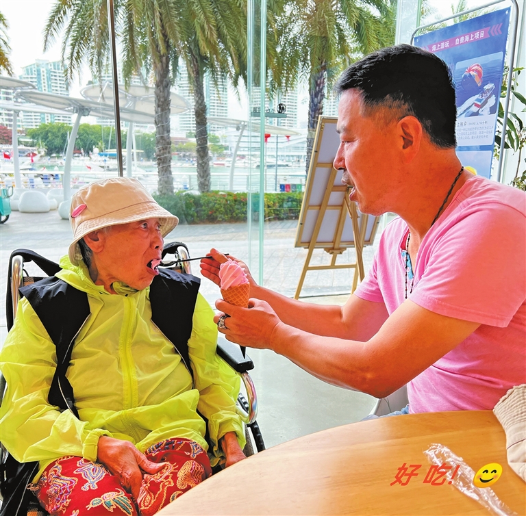 张兴义开车带着母亲自驾到海南环岛旅行。在三亚,张兴义租了一个面朝大海的房间,离三亚湾步行只要10分钟。喜欢看海的母亲能在海边坐一整天,兴致来了,还要踩水、喝椰子水、吃冰淇淋。