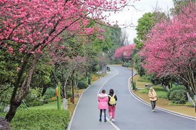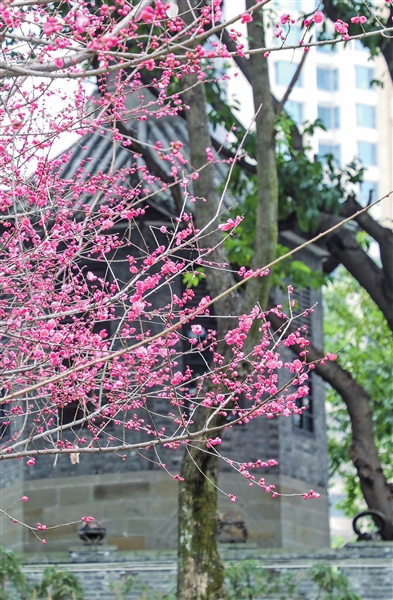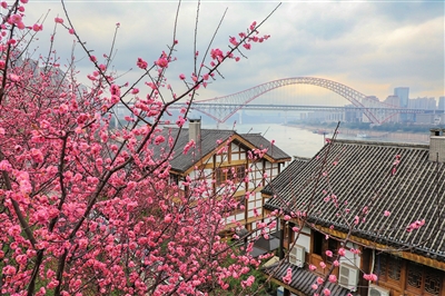 江北有山也有水。北滨路沿线,也少不得春日胜景。三洞桥民俗风情街,青砖白墙仿若背景,被春天这位大师点缀上红的粉的花团,漫步其间,边品美食,边赏花,别有一番趣味;江北嘴中央商务区滨江广场,孩子们在花海中嬉戏;即使路过,北滨路主干道上也是鲜花盛开,“白里透红”,仿若一个活泼中带着几分羞涩的小姑娘,笑盈盈的,迎接着春天的到来……