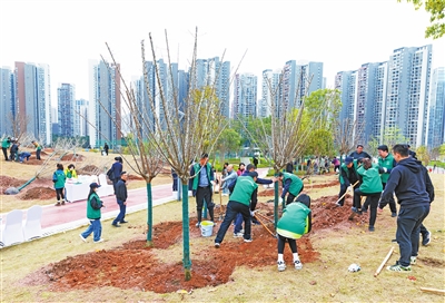 本报讯 在第45个植树节来临之际,我区开展形式多样的植树活动,引导市民群众通过认种认养、志愿服务等方式参与义务植树,让爱绿护绿植绿从我做起的理念根植在每个人心中。