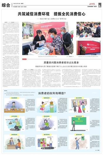编者按: 3月15日是“国际消费者维权日”,为保护消费者的合法权益,我国制定了《中华人民共和国消费者权益保护法》 那么作为消费者,我们享有哪些权利呢?下面九幅漫画为你详细介绍。