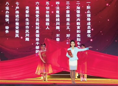 其中,有清官廉吏的历史重现。区城市管理局党委表演的舞台短剧《廉吏翁同龢》,反映了历代先贤心系桑梓、寄情亲人的动人情感。安城财险表演的故事《三块银元》,讲述了中共地下党员肖林执行南方局党委决定,留下一段“三块银元”的传奇佳话,再现了一段波澜壮阔、惊心动魄的红色财经史,提醒党员干部要时刻对党忠诚、无私奉献。