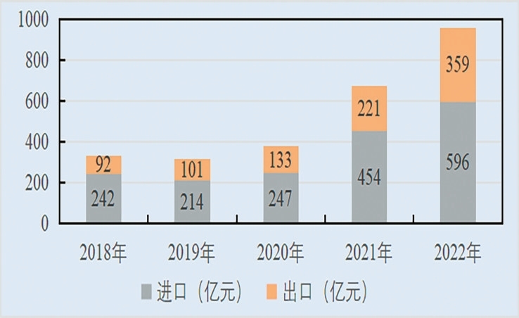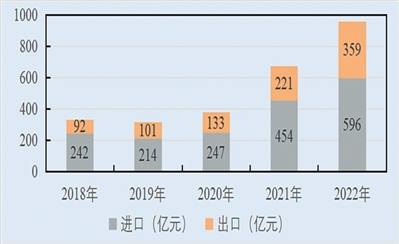全年货物进出口总额955.3亿元,增长41.4%。其中,出口359.2亿元,增长62.4%;进口596.0亿元,增长31.1%。货物进出口逆差236.8亿元,比上年增加3.8亿元。对“一带一路”[6]沿线国家进出口总额340亿元,占全区进出口总额的35.6%。对《区域全面经济伙伴关系协定》(RCEP)其他成员国[7]进出口额477亿元,占全区进出口总额的近50%。