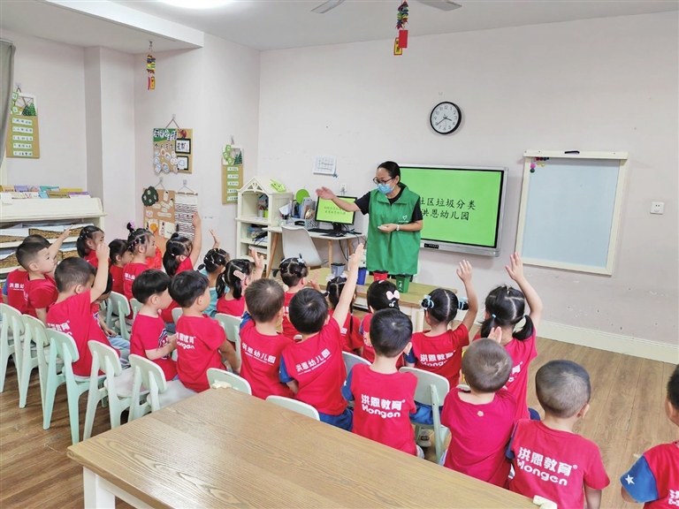 坚持基层党建引领,全区党员领导干部带头参与垃圾分类7361人次,开展入户宣传256090户,全区共有垃圾分类指导员1275人,开展实地桶边指导、宣讲、劝导等13925人次;在辖区小区单元楼出入口、主次干道沿线围墙、栏杆等城市立面宣传阵地,设置生活垃圾分类指引等宣传栏、插牌、宣传画、专题海报2010张,悬挂宣传条幅436张;开展各类社区活动、大手拉小手活动2537次,发放宣传指南280360张,发放垃圾分类指导手册、宣传资料23600份;创新引进社会企业参与垃圾分类,由重庆银行出资共同开展五里店片区垃圾分类宣传工作,形成全社会积极参与垃圾分类的浓厚氛围。