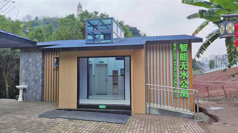 塔山公园片区无市政污水管网,修建传统公厕排污困难,经过多方咨询、市场比对,决定使用无水生态洁厕,该类公厕采用排泄物生物降解技术,可转化为高效有机肥,无残渣排放,无需清运。公厕还配备酒精喷雾洁手机和烘手机,方便市民便后洗手。近年来,江北区大力推进“厕所革命”项目,农村卫生厕所达标率近97%,无害化厕所改造率90%以上。