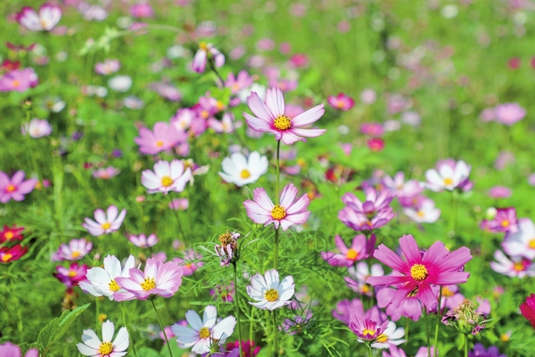 一阵微风吹过,成片的花海宛如彩蝶,翩跹飞舞。长长的花径托着花朵,轻柔地摇曳着曼妙身姿,散发出淡淡花香,引得蜜蜂蝴蝶飞舞其间。红色、白色、粉色、紫色……仿佛是春天迷恋人间,重回了大地,把浪漫的色彩挥洒在这里。