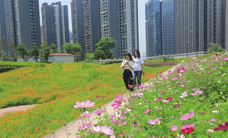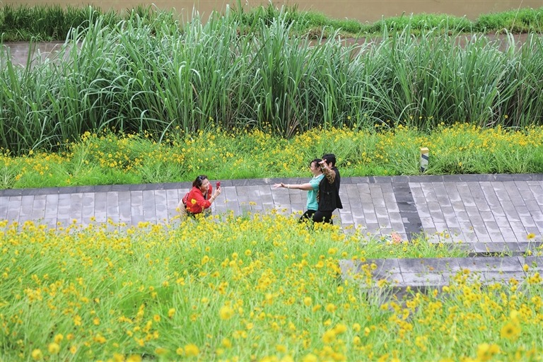 据区城市管理局相关负责人介绍,溉澜溪体育公园的这片花海是公园全新打造的花谷景观,而这样如画般的美景可以说是来之不易。
