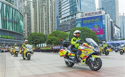 “街面巡逻防控快速处置冲锋队,出发!”8月28日上午10时30分,随着一声指令的下达,蓄势待发的警用车辆方阵从观音桥步行街鱼贯而出,按照既定路线展开巡逻。这一声指令,标志着我区街面巡逻防控快速处置冲锋队正式成立。
