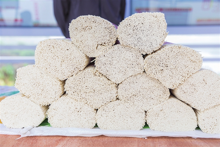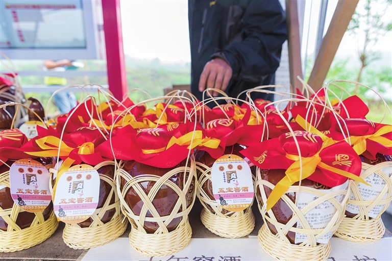 纯粮食酿造的“五宝窖酒”,早已远近闻名,不少酒友就为此而来。阳光晒出的“五宝干面”,农家自制的红苕粉、糍粑,现场都被抢购一空。还有今年上的新米,也精心分为精米和糙米,为不同健康需求人士量身打造。