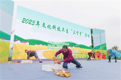 活动在群众文艺汇演——舞蹈《希望在田野》节目中正式开始。“都说咱老百姓是那满天星,群星簇拥才有那月光明……”观众们跟着独唱《咱老百姓》的节奏挥舞着手臂,一起唱着歌,大家脸上洋溢着幸福的笑容。歌声结束后,全场爆发出雷鸣般的掌声和欢呼声,这是对歌手的赞赏,也是对所有农民辛勤付出的感谢。
