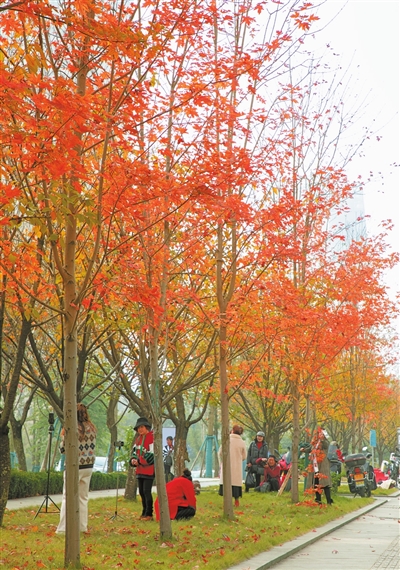来到江北嘴精学街,站在路口就可看到马路旁一大片枫林,枫树已经被火红的叶子所笼罩。这里的红枫是元宝枫,枫林长度达百米,行走在这枫林之间,微风吹过,枫叶缓缓下落,仿佛置身于仙境一般。市民可乘坐轨道交通6号线,从江北城站3号出入口出站,步行约100余米即达。