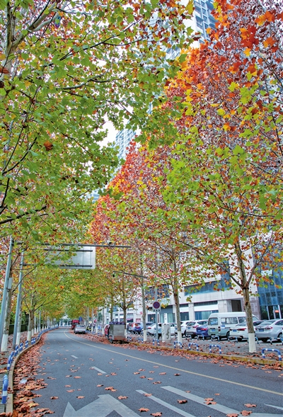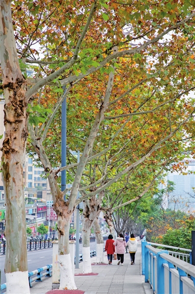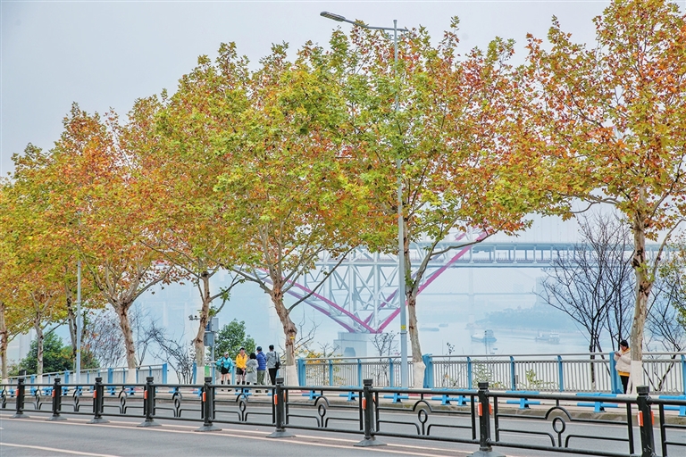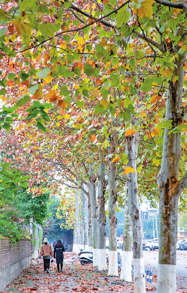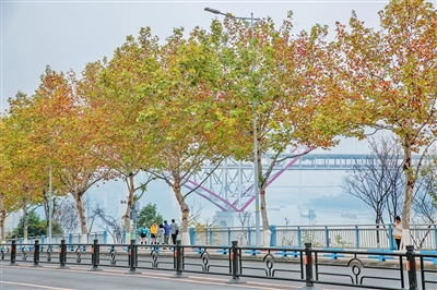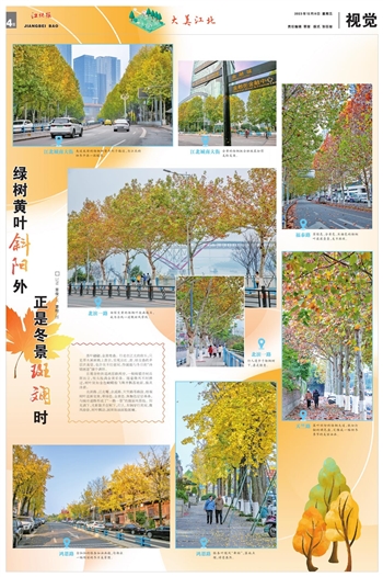 落叶翩翩,金黄堆叠。行走在江北的街头,只见草木渐渐换上黄衣,呈现出红、黄、绿交叠的多层次美景,也许在不经意间,你就能与冬日的“诗情画意”撞个满怀。
