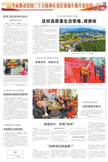 地更绿了。新增城市绿地面积128万平方米,打造江盛路、三洞桥街头等6个山城花境,全区公园总量达109个。“两江四岸”治理提升“三园两湾”项目顺利建成,18公里岸线骑行道、步行道全线贯通。江北城段消落区综合治理工程被水利部评为三峡后续工程示范点。