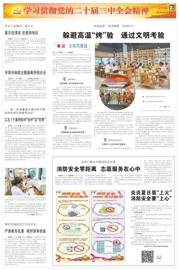 近日,记者走进嘉陵书院、方圆LIVE、龙湖北城天街发现,市民积极遵守市民文明公约,文明纳凉,不赤膊赤脚、不外放设备声音、不乱扔垃圾,共同维护城市文明,不仅通过高温的“烤验”,也通过了文明素质的考验。