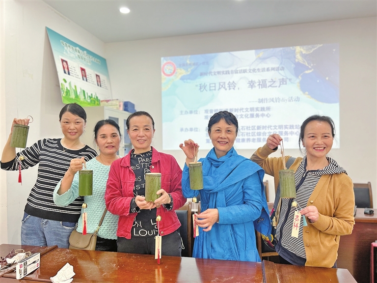 11月7日,观音桥街道猫儿石社区新时代文明实践站开展“秋日风铃,幸福之声”主题DIY竹风铃活动。