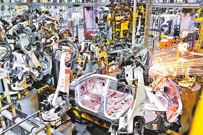 位于两江新区的长安汽车两江工厂,机器人挥舞着手臂有序作业。重庆日报记者 张锦辉 摄/视觉重庆