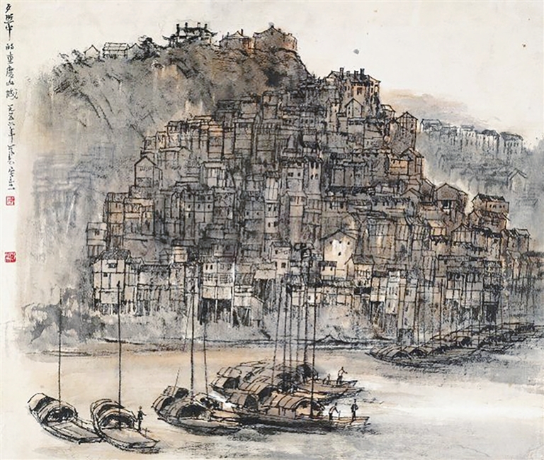 1943年,李可染受国立艺专新任校长、著名画家陈之佛邀请到国立艺专任教,他十分高兴地答应了。抗战时期,北平艺专与杭州艺专合并后叫国立艺专,由于当时战火纷飞,国立艺专只好四处迁徙,1942年落足在江北磐溪(今江北区大庆村)。这里前临磐溪河,后靠龙脊山,山清水秀,风景优美。在战争年代,有这样一个近乎世外桃源的地方,那真是千金难买;而且这里交通也比较方便,往东可到香国寺过河到重庆城(今渝中区)的牛角沱,往西到石门过河可到沙坪坝。国立艺专迁徙到这里,有一个重要原因就是希望请到重庆城中的大家来上课。