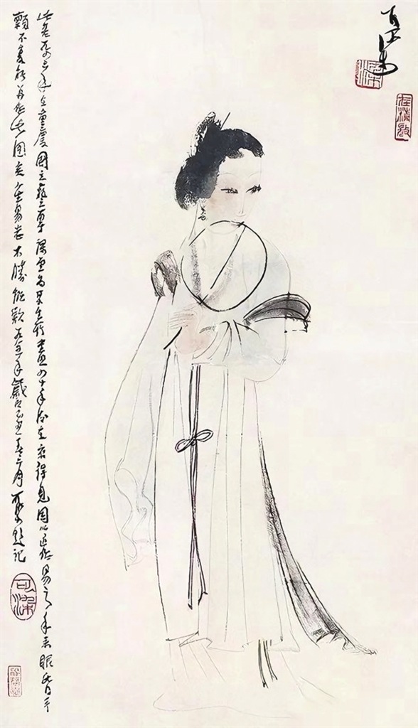 李可染在国立艺专这几年,心情特别好,创作颇丰,而且精品不少。被后人视为李可染先生代表作的《执扇仕女》《放鹤亭》等就是这一时期的作品。课外之余,他还时不时与学生一起开展京剧表演活动,他擅长操琴,许多同学都享受过“可染伴奏”的幸福。李可染的第二任妻子邹佩珠,那时也是学生中的京剧爱好者,他们就经常在一起参加排练与演出活动。