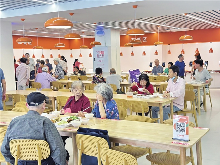 这里不仅拥有社区老年食堂和养老服务站,更是集照护枢纽、社交据点、文化沙龙于一体的社区养老服务综合体,3300平方米的空间内融合了养老照护、智能服务、健康餐饮、健身社交、小修小补等多元功能,为周边居民构建起触手可及的“家门口”养老生活圈。
