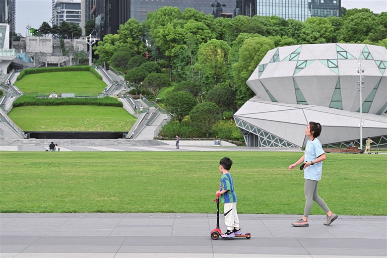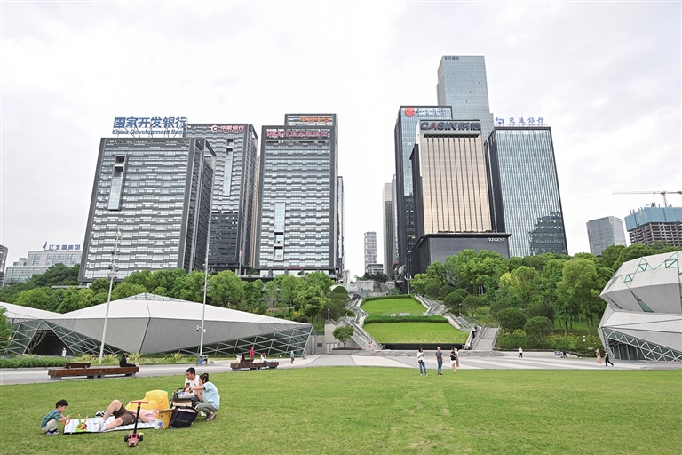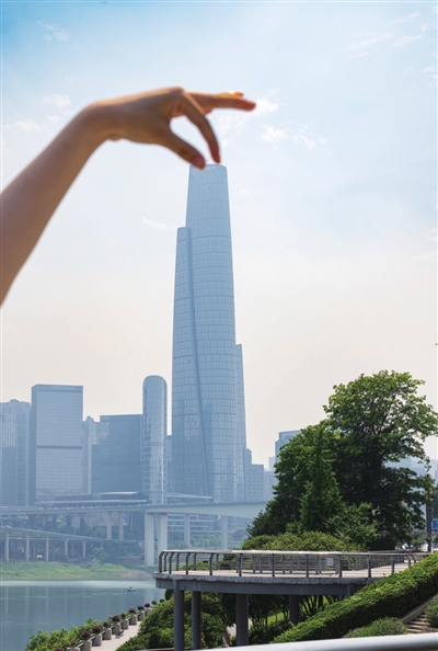 沿江北a~台前行200米,半圆形观景台自带视觉诡计——抬手就能“拎起”西部第一高楼陆海国际中心,玻璃幕墙在阳光下如钻石般切割云层。