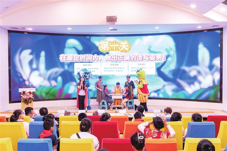 活动现场,25组家庭观看舞台剧《瞳梦国护眼大作战》、参观眼健康科普馆,通过一系列科普讲座和互动小游戏,了解护眼爱眼知识。