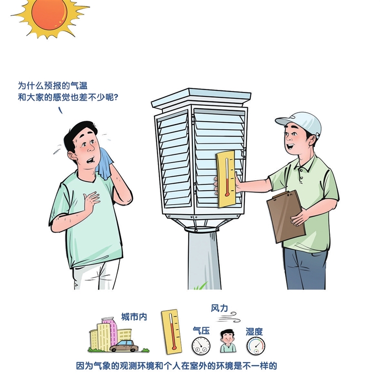 “因为气象的观测环境和个人在室外的环境是不一样的。气温是近地层大气环境的温度,而大家感受到的是体感温度,其受到气压、风力、湿度等多重影响。”朱定真说。