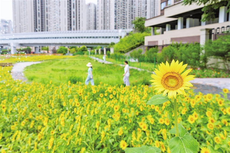 其实这里离塔山公园并不远,但氛围却完全不同。公园里的树是稳重的长辈,而溉澜溪的花们都是活泼的孩子。有人拍完花,拎着刚买的冰汽水往公园走,边走边跟同伴说:“先在花里疯够了,再去公园的长椅上歇脚,这才是夏天该有的滋味嘛!”