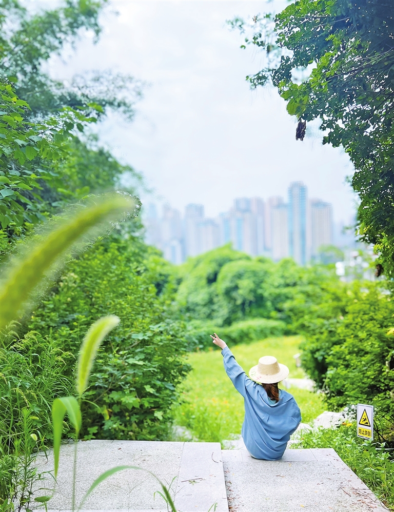 这条绿意盎然的小径藏在树影里。爬山虎、狗尾草,绿树、草坪,把时光一下裹成了翡翠色。阳光透过树叶的缝隙筛下来,在地上拼出星星点点的光斑。随意在石阶上坐下,听听蝉鸣在头顶此起彼伏。起身脚步声惊起几只麻雀,扑棱着翅膀跳进远处的灌木丛,留下一串“叽叽喳喳”的争闹。