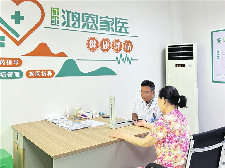 独居的颜奶奶患多种慢病且行动不便,林全每周准时上门巡诊。今年夏天,颜奶奶突发右下肢疼痛,第一个拨的就是林医生的电话,他第一时间赶到,凭多年的临床经验判断应该是下肢动脉闭塞,迅速联系救护车送上级医院,挽救了老人生命。他还在社区开起“健康小课堂”,指导大家用药、慢病管理、老年体检、健康教育。有人说他不像医生像亲人,林医生总笑着说:“守好这方辖区,就是守好大家的健康门。”