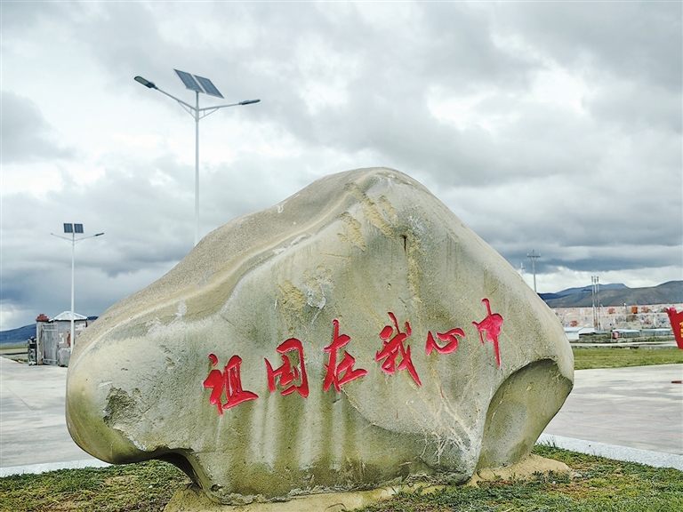 在尼色边境村,慰问团见到了服役19年的老兵曹灿雄。这个黝黑粗犷的汉子,有着细腻的守边情怀。他带着大家走访他守护了19年的边境线,一路上不时有藏族同胞用生硬的汉语亲切地喊他“曹班长”。走到一处刻有“中国”的石壁,他单膝跪地,用手仔细擦去积雪,动作轻柔得像在抚摸孩子的脸庞。