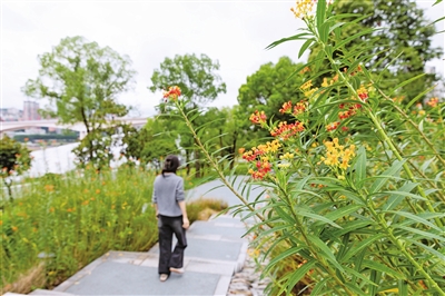沿着堤岸漫无目的地散步。