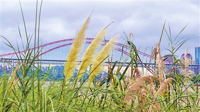 蒲苇如浪,脚边掠过蓬松的金芒,