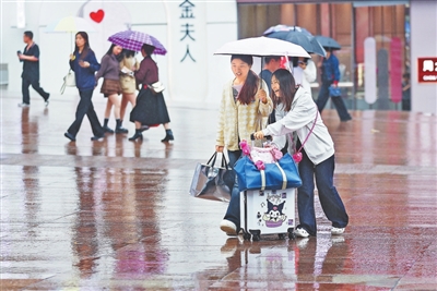 10月20日,观音桥步行街,市民、游客在雨中逛街。
