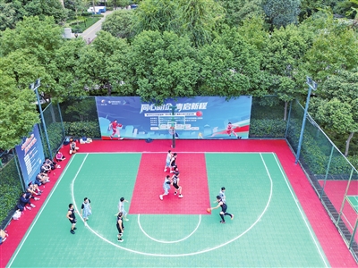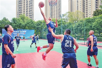 “三分!”当农行重庆江北支行队12号球员在三分线外跃起时,场边的观众举着彩色气球蹦跳着尖叫,篮球空心入网的瞬间,他身旁的企业职工家属激动地挥舞着手牌。