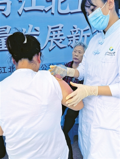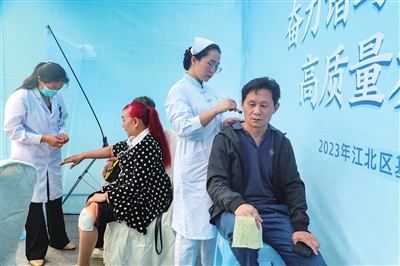 在活动现场,中医技术体验区热度空前。区中医院针灸科的医师现场为居民把脉施针,还配合拔罐、艾灸。传统中医秘方也很受欢迎。据介绍,我区现有中医医疗机构139家,占医疗机构总数的22.64%,有全国示范中医院2家(重庆市中医院、江北区中医院),中医执业(助理)医师1454人。