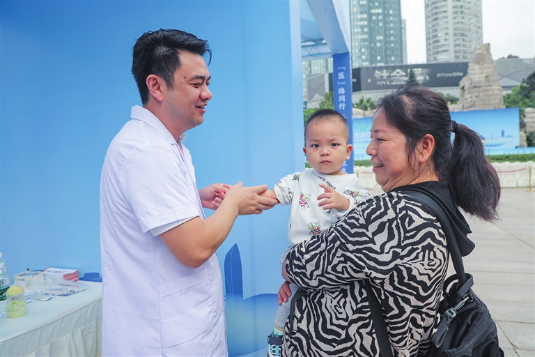 10月8日,主题为“‘医’路同行 奋力谱写江北卫生健康高质量发展新篇章”的2023年江北区基本公共卫生服务宣传活动在观音桥商圈举行。活动由区政府主办,区卫生健康委承办。