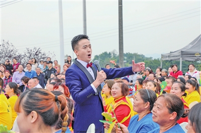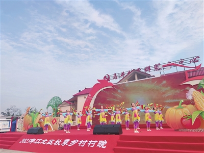 “大树村,来一个哦!”10月23日上午,五宝镇马井村广场欢声笑语、歌舞欢腾。在一片欢乐响亮的对歌声中,“大地欢歌 乡约四季”2023江北区秋季乡村“村晚”拉开序幕。