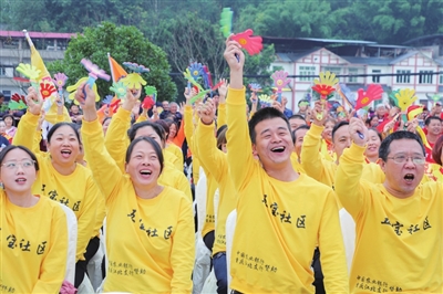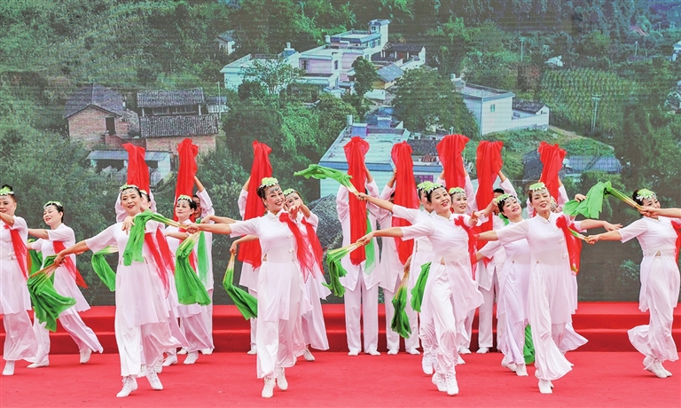 五宝镇大树村带来了配乐诗朗诵《锦绣》,万缘村带来了幼儿舞蹈《童年叮叮当》,马井村带来了啦啦操表演《曙光》;郭家沱街道铜锣村的舞蹈《花开连年》,复盛镇华山村的歌伴舞《走进新农村》,华新街街道华新村的歌伴舞《谁不说俺家乡好》;大石坝街道三村的舞蹈《我们的家乡》……