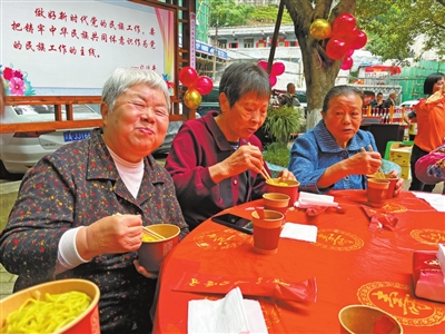 10月23日,五里店街道工校社区开展“红石榴厨房——桂香面长邻里亲,浓浓重阳敬老情”活动。300余名70岁以上的高龄老人欢聚一堂。民族舞蹈《母亲是中华》、大合唱《没有共产党就没有新中国》、小品《不忘初心》等节目精彩好看,赢得阵阵掌声。
